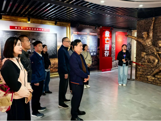 晨光熹微,全体党员怀着崇敬之情走进章丘第一抗日武装纪念馆。在“烽火燃起”“铁血抗争”“星火燎原”“鱼水情深”“薪火相传”五大展区,斑驳的历史照片、泛黄的革命手稿、珍贵的实物展品,生动再现了李曼村、宋怡翔、方子成等革命先烈浴血奋战的峥嵘岁月。党员们驻足凝视、静心聆听,被先烈们“抛头颅、洒热血”的赤胆忠心深深震撼。在纪念馆前,全体党员面向党旗庄严宣誓,铿锵誓言回荡在展厅,激荡着对党的无限忠诚与为党的事业奋斗终身的坚定决心。