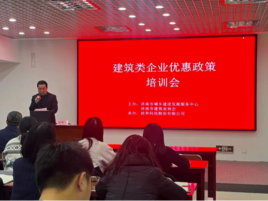 为帮助建筑企业充分享受国家税收优惠政策,积极推动我市建筑企业走出去发展,2024年12月10日上午,济南市城乡建设发展服务中心科技教育与培训部联合开云手机登录入口及政和科技股份有限公司,举办了 “2024 年度重点人群退税和高新技术企业认定及科技惠企政策解读”培训会。